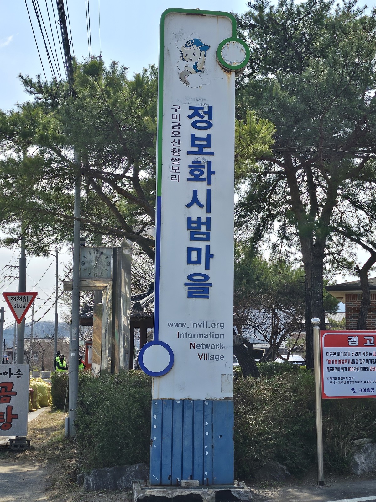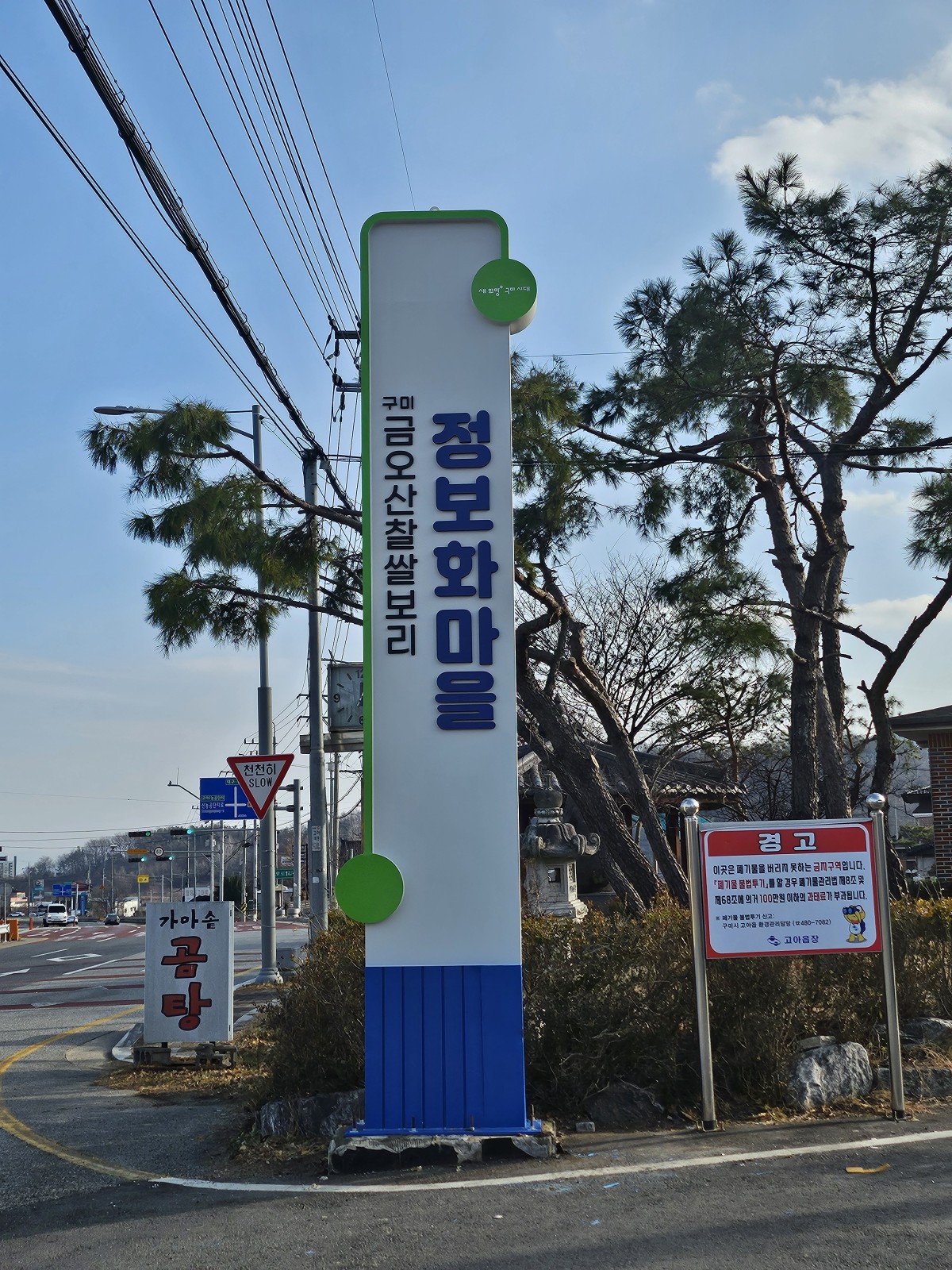 구미시 두 개 마을은 지난 12월 입간판 보수 작업으로 정보화마을 입간판이 깔끔하고